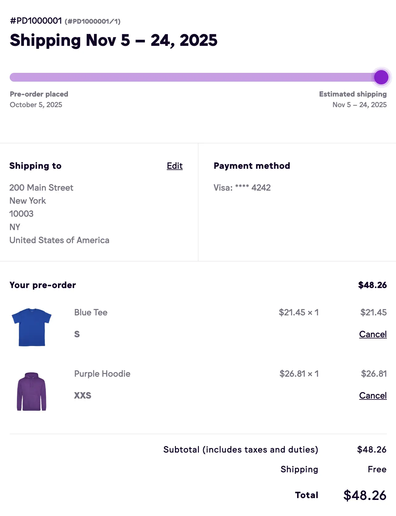 Our platform handles delays effortlessly, and customers can manage their pre-order anytime before it ships with a self-serve portal – significantly reducing customer support tickets.